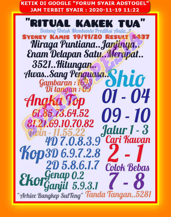Forum syair sdy adstogel 19 november 2020. Forum syair sdy 19 november 2020. SYAIR NAGAMAS SYDNEY. Forum syair sydney hari ini 28 april 2021 bocoran syair sidney kamis 29-4-2021 maupun prediksi syair sydney toto jitu merupakan gambar syair sdy biasa juga disebut code syair sydney banyak di cari pemain togel maupun master togel sdy dari sekian banyak syair togel sydney ada beberapa syair yang sudah banyak penggemar nya.